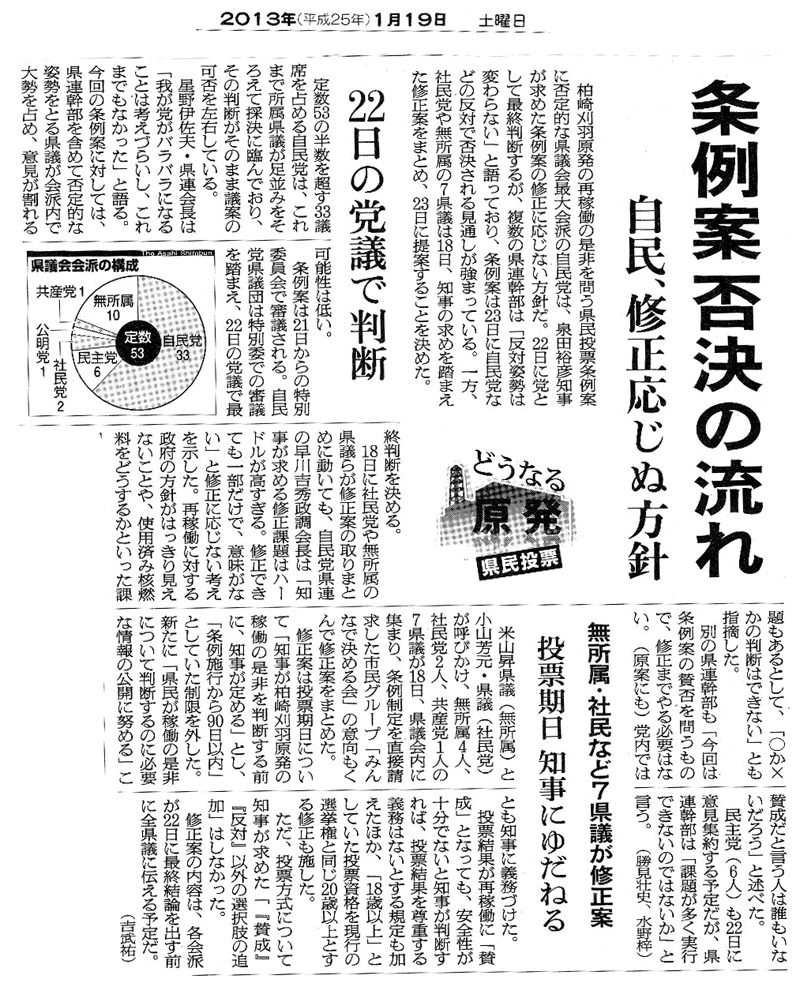 2013/1/19 朝日新聞 「条例案否決の流れ」